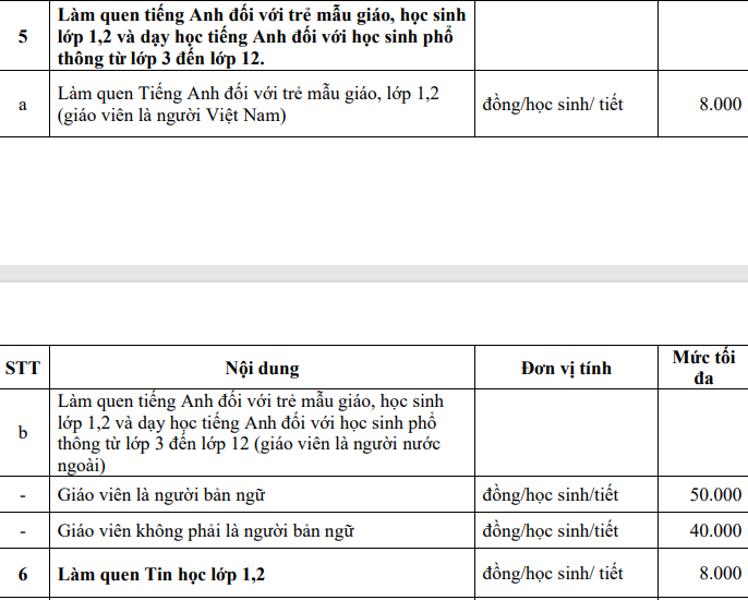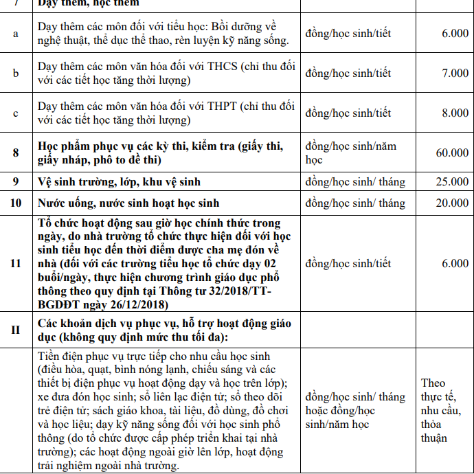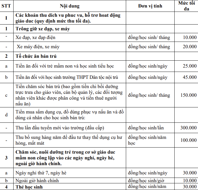 Theo hướng dẫn của Sở GD&ĐT Ninh Bình, đối với các trường công lập, có 11 mục thu dịch vụ phục vụ, hỗ trợ hoạt động giáo dục được quy định mức tối đa.