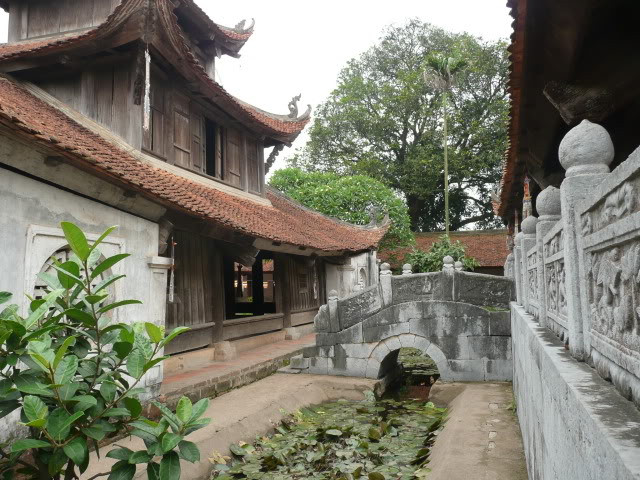 Nối giữa Thượng điện (Thế giới Phật Pháp lòng thành được nhận) và Tích thiên Am (Nơi cầu mong để được siêu thoát) là chiếc Cầu đá cong (Vượt qua cầu đã cao xa giữ sạch bụi trần) bắc ngang qua hồ nước trồng sen tinh khiết.