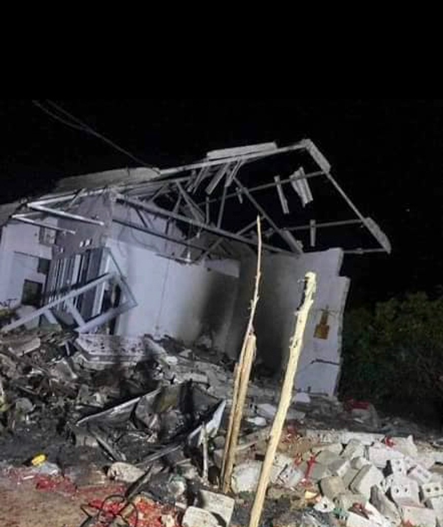Tại hiện trường, toàn bộ đồ đạc trong nhà bị hư hỏng, phần mái và phía trước của ngôi nhà bị thổi bay, dưới nền có nhiều chỗ bị lún vỡ... Vụ việc khiến nhiều người dân bàng hoàng.