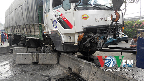 Khi vừa cầu vượt Sóng Thần khoảng 400m (thuộc P.Bình Chiểu, Q.Thủ Đức) thì bất ngờ đâm vào dải phân cách bên phải (ngăn giữa làn xe máy và xe tải) khiến xe hư hỏng nặng dàn gầm.
