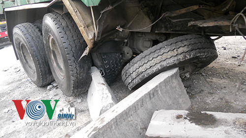 Do lượng hàng trên xe khá nặng, nên nhà xe phải điều một xe tải khác sang hàng rồi mới di dời được xe tải gặp nạn. Đến 9h00 cùng ngày vụ việc vẫn chưa được khắc phục xong.