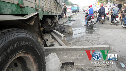 Tại hiện trường, xe tải 16 tấn hư hỏng nặng, gãy nhíp trước, rơi hai trục cầu trước và bánh xe ra ngoài, gần 10 đoạn dải phân cách bê tông văng ra khỏi hàng. Vụ việc gây cản trở giao thông khiến các phương tiện xếp hàng dài lưu thông chậm theo hướng đi ngã tư Bình Phước.