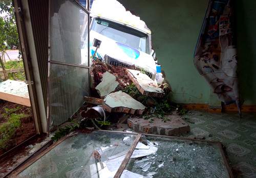 Đầu xe đã ủi sập tường hai căn nhà, hư hỏng cửa và nhiều đồ đạc. Tai nạn không gây thương vong, song khiến nhiều người đang ngủ trong hai nhà hốt hoảng.