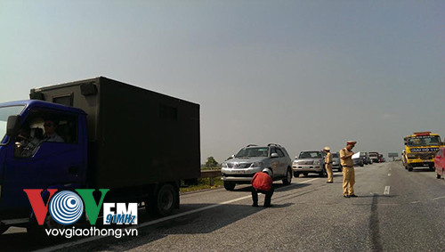 Vào khoảng 12h30 hôm nay (23/9), chiếc xe tải 3 tấn chở cám mang BKS 18C - 01265 do tài xế Nguyễn Văn Huyện (trú tại Hải Hậu, Nam Định) điều khiển đang lưu thông trên đường cao tốc Pháp Vân – Cầu Giẽ theo hướng đi Hà Nam, khi đi đến km195 thuộc địa phận xã Quất Động, huyện Thường Tín, Hà Nội thì bất ngờ bị nổ lốp sau.