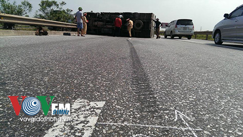 Hậu quả, chiếc xe tải lật nhào, nằm chắn ngang đường, chiếm 2/3 diện tích lưu thông khiến các phương tiện bị dồn ứ, giao thông qua hiện trường gặp khó khăn. Rất may là lái xe không bị thương trong sự cố trên.