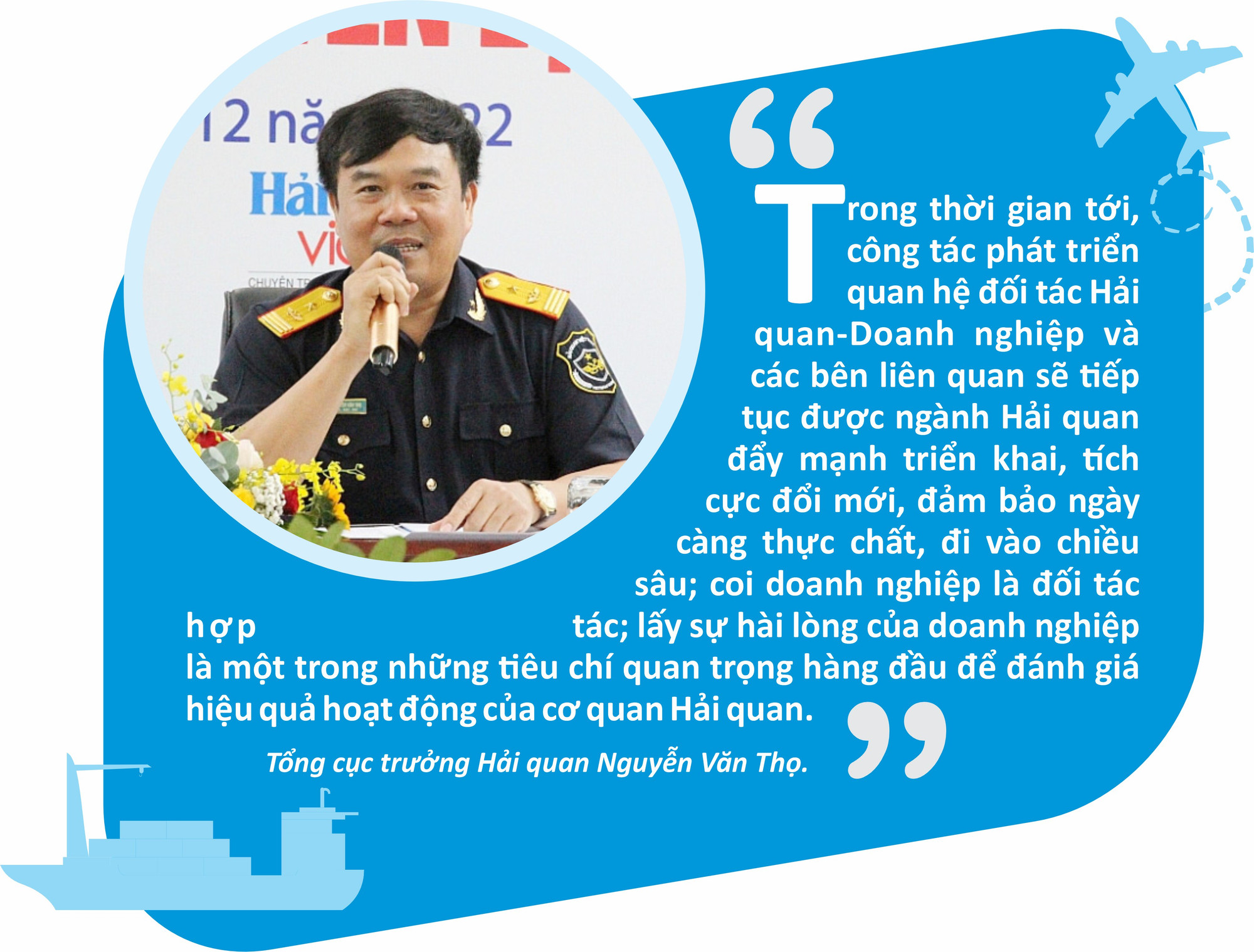 Trong thời gian tới, công tác phát triển quan hệ đối tác Hải quan-Doanh nghiệp và các bên liên quan sẽ tiếp tục được ngành Hải quan đẩy mạnh triển khai, tích cực đổi mới, đảm bảo ngày càng thực chất, đi vào chiều sâu; coi doanh nghiệp là đối tác hợp tác; lấy sự hài lòng của doanh nghiệp là một trong những tiêu chí quan trọng hàng đầu để đánh giá hiệu quả hoạt động của cơ quan Hải quan.