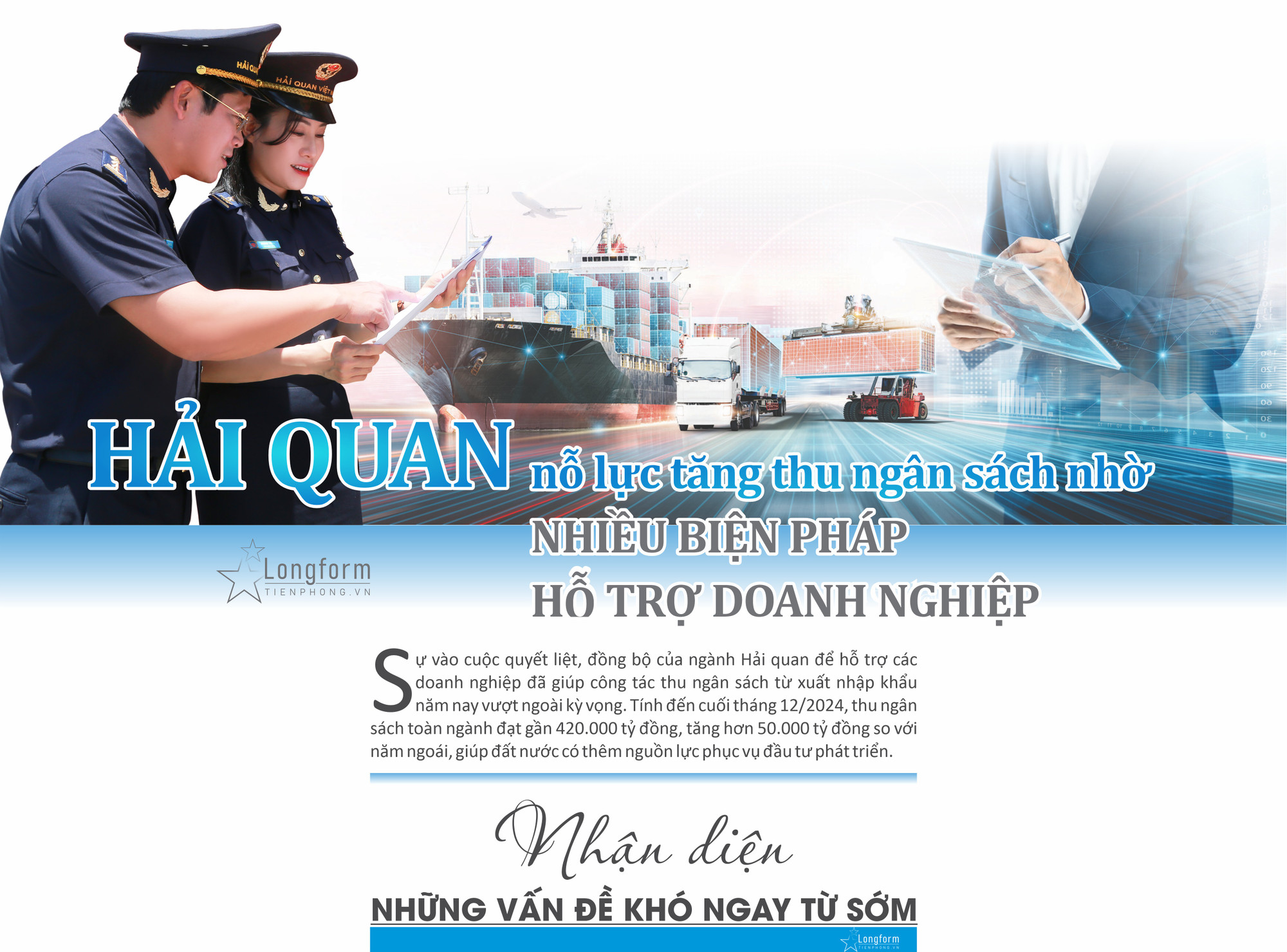 Năm 2024, Tổng cục Hải quan được Quốc hội giao dự toán thu ngân sách là 375.000 tỷ đồng. Trước bối cảnh thế giới có nhiều diễn biến phức tạp, khó lường đã ảnh hưởng trực tiếp đến hoạt động thương mại của nước ta, đây là áp lực không nhỏ đối với ngành hải quan.
