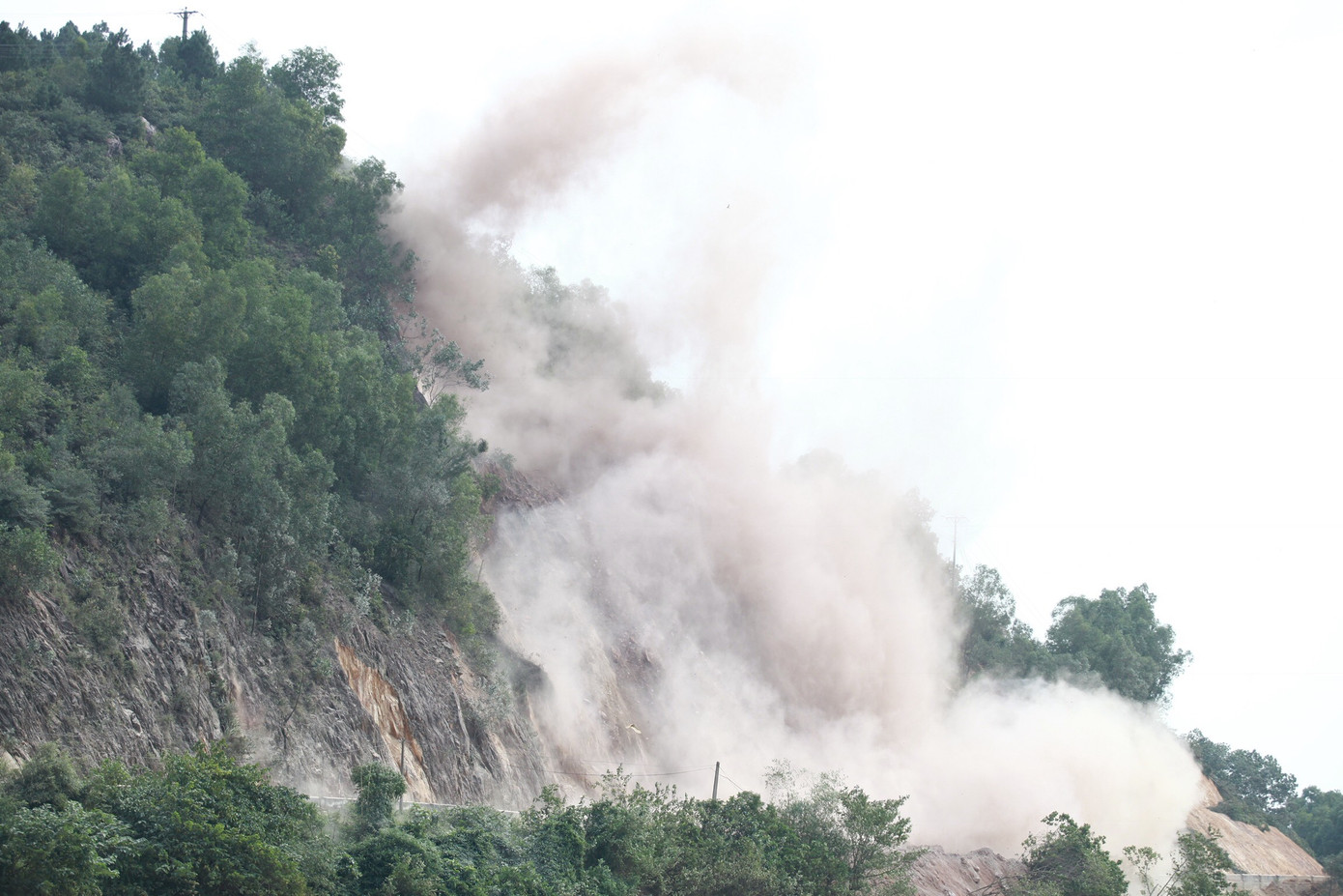 Cảnh cho nổ mìn để đảm bảo an toàn qua Rú Nguộc.
