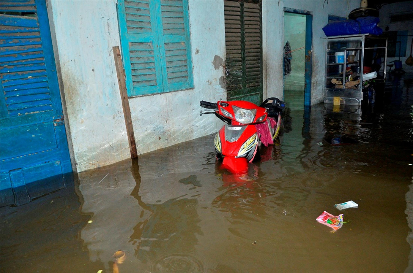 Chiều 10/8, khu nhà trọ lụp xụp trên đường Lương Định Của (phường An Phú, quận 2) vẫn chìm trong biển nước dù mưa đã dứt từ 4 ngày trước. Trong căn phòng trọ chật chội của bà Phùng Thị Tuyết (65 tuổi, quê Bến Tre), nước vẫn còn ngập đến đầu gối. Đồ đạc trong phòng được kê lên cao. Căn gác xép là nơi khô ráo duy nhất được dùng để làm chỗ ngủ và nơi cả gia đình 4 người trú tạm trong thời gian chờ nước rút.
