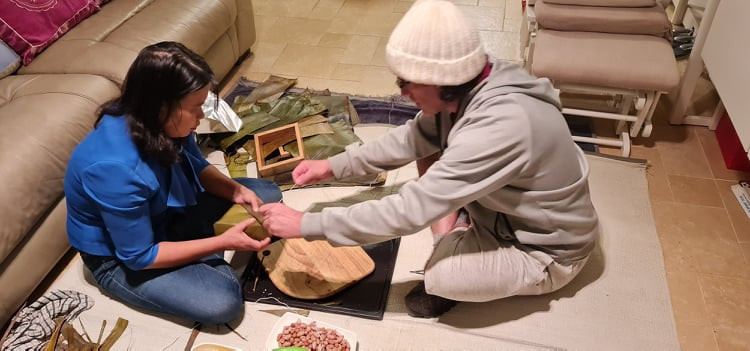 Mặc dù lần đầu gói bánh chưng, lại không có lá dong, nên chị đã sơ chế lá chuối rất kỹ, nào luộc, nào ngâm muối cho hết vị chát vì lá chuối Israel rất cứng.