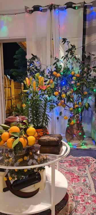 Xong nồi bánh chưng, chị bảo đến 30 Tết mà chồng bớt bận, chị sẽ rủ đi kiếm cây đào vì Israel rất nhiều đào. Riêng cây quất thì chị xuống nhà người chú chồng hái cành cam, trông rất giống quất Việt Nam, mang về trang trí Tết.