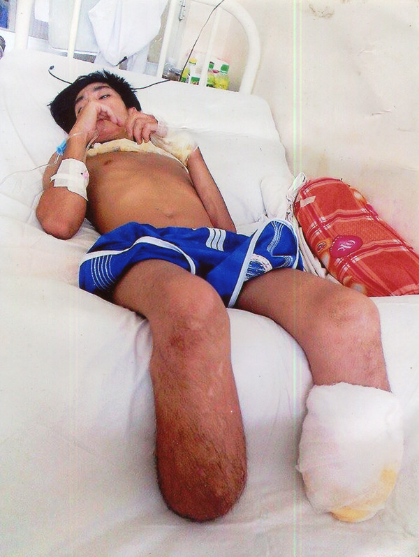 Vỹ nằm bệnh viện đến ngày hôm nay vừa tròn một tháng. Hai chân của Vỹ bị cưa cụt, hai tay và cổ sẽ được bác sỹ giải phẫu cắt bỏ.