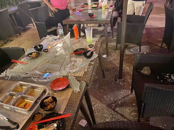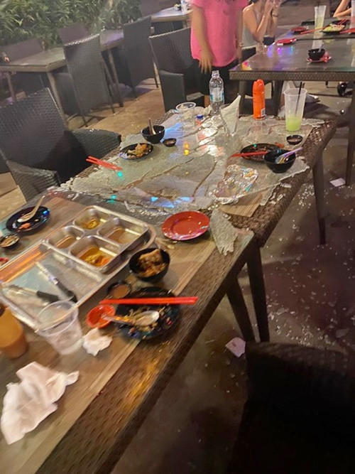 Theo Ng thì nhân viên của nhà hàng cũng sốc chứ chưa nói đến khách. Họ vội vàng xin lỗi, lau dọn và giải thích rằng, mặt bàn kính nổ là do nồi lẩu nướng nóng hơn mức kính có thể chịu được.