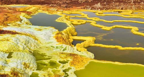 Vùng lõm Danakil nằm trong sa mạc cùng tên. Đây cũng là nơi đang "giữ vững" danh hiệu điểm đến có người sinh sống nóng nhất trái đất, với nhiệt độ trung bình quanh năm là 34 độ C.