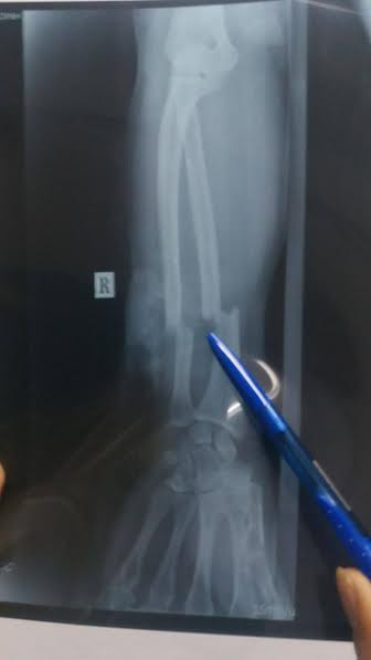 Theo đó, cánh tay của nạn nhân bị chém đứt lìa xương cẳng tay phải, cánh tay và cẳng tay chỉ còn dính với nhau bằng một phần thịt mềm rất nhỏ; bó mạch máu, thần kinh cẳng tay bị đứt phải thực hiện vi phẫu.