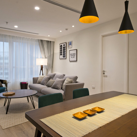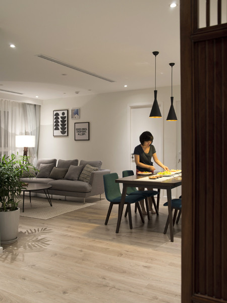 Ánh sáng sử dụng trong căn hộ được nghiên cứu và thiết kế cẩn thận để phù hợp với căn hộ và thói quen của chủ nhà, tạo ra sự sang trọng trong phòng khách, thu hút sự tập trung ở bàn ăn hay cảm giác êm dịu trong phòng ngủ.