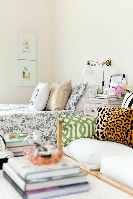 Một vài điểm nhấn ở gối, tranh ảnh hay chiếc bàn đầu giường đủ để tạo ấn tượng cho không gian nhỏ.