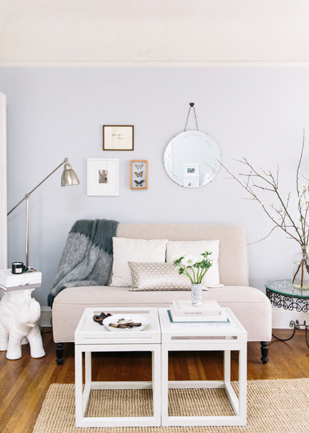 Những món đồ màu nhạt cùng phong cách trang trí cổ điển khiến căn hộ rộng hơn thực tế.
