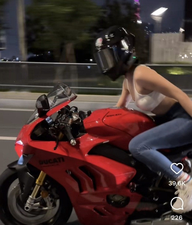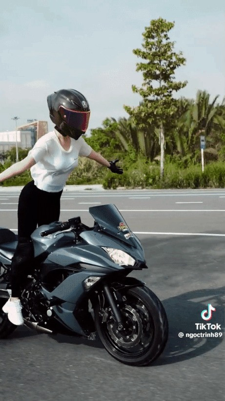 Những tưởng Ngọc Trinh chỉ sắm về nhà cho vui, ai mà ngờ cô còn bỏ thời gian để học cách điều khiển loại xe những tưởng chỉ dành cho nam giới này. Trên trang cá nhân, cô còn đăng tải nhiều video đang phóng xe rất nhanh trên đường với trang phục khá kiệm vải so với đồ mà các tay đua phân khối lớn hay sử dụng.