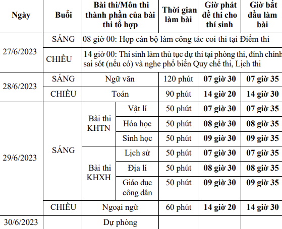Theo hướng dẫn, Kỳ thi được tổ chức vào các ngày 27, 28, 29 và 30/6/2023.