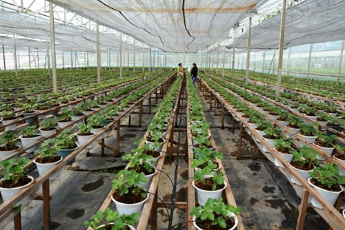 Trang trại dâu tây theo công nghệ Pháp, đạt tiêu chuẩn Châu Âu của gia đình bà Thủy đã trở thành một điểm đến kỳ thú cho du khách. Ở trang trại này, mưa không đến mặt, nắng không tới đầu, khi trời nắng nóng lập tức hệ thống phun sương sẽ tự động làm mát cho dâu.