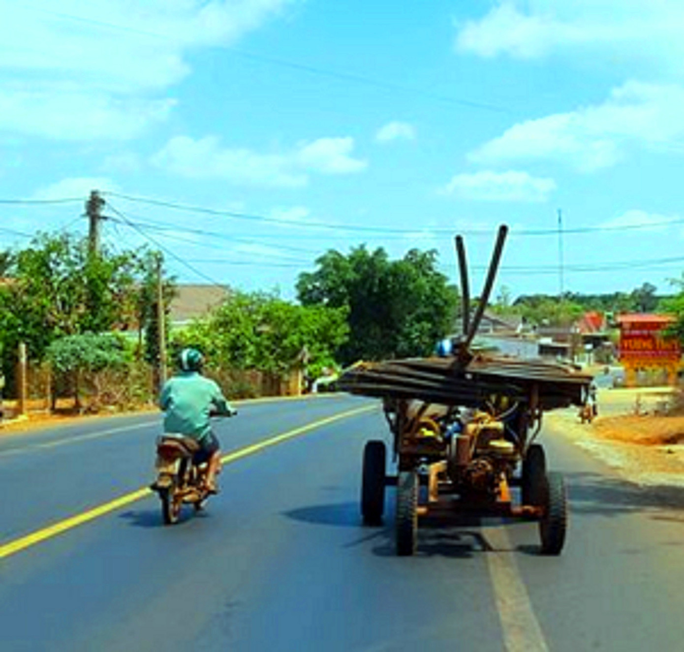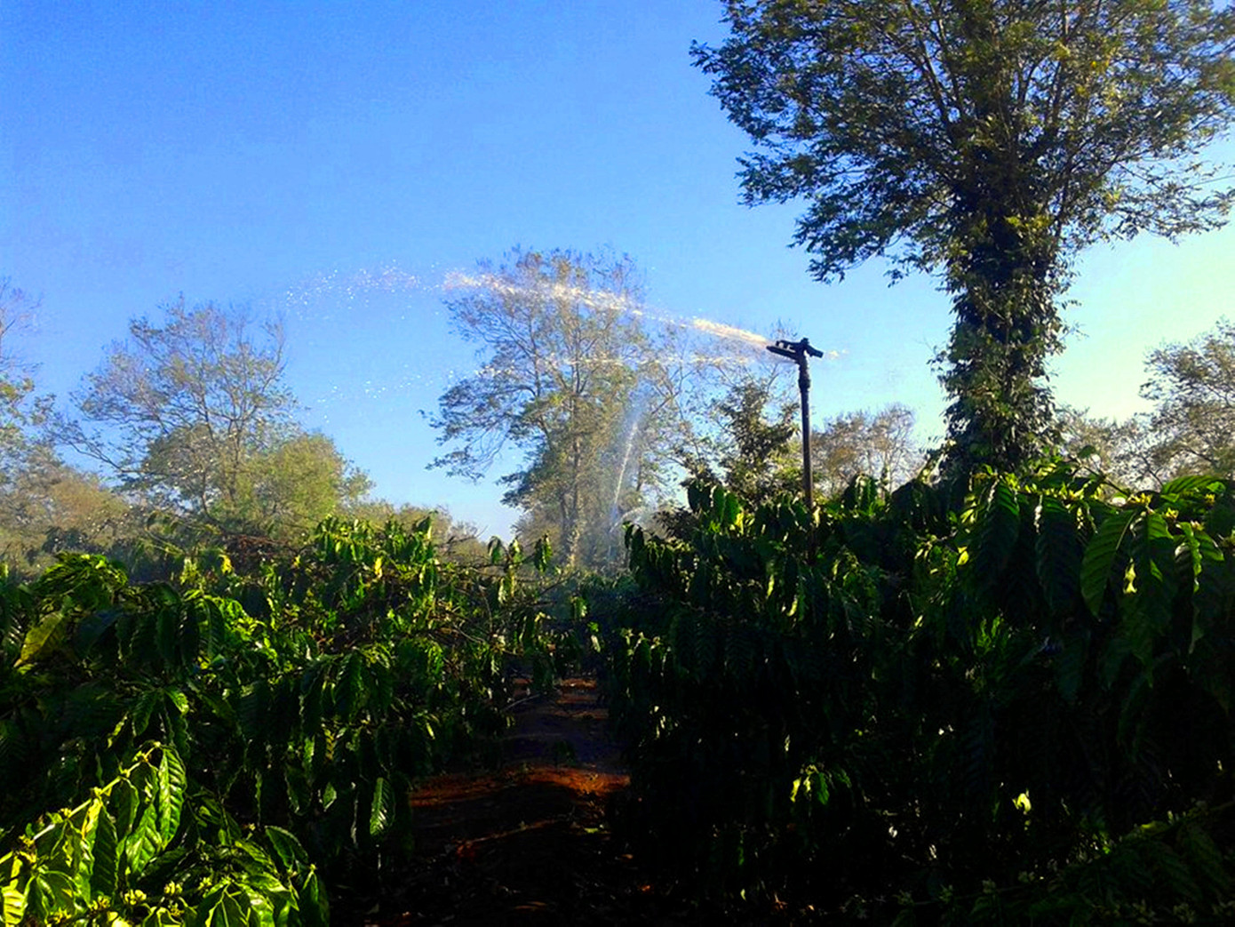 Trong cái nắng hanh hao mùa khô, chỉ nghe âm thanh máy nổ xình xịch, nước phun trắng xóa trên các triền đồi cà phê. Mùa này, đi trên đường, thỉnh thoảng người đi đường phải né những chiếc xe công nông chất đầy thùng máy bơm, ống tưới, phân bón chạy ì ạch rồi rẽ vào con đường mòn nhỏ dần mất hút giữa những rẫy cà phê.