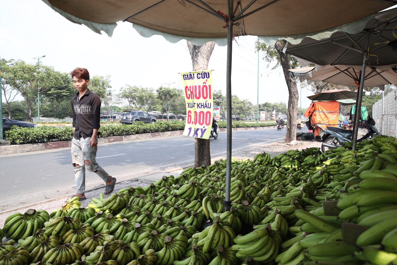 Những ngày qua tại một số khu vực ở TPHCM xuất hiện các điểm bán "giải cứu" chuối xuất khẩu với giá 6.000 đồng/kg (Ảnh: Nam Anh).