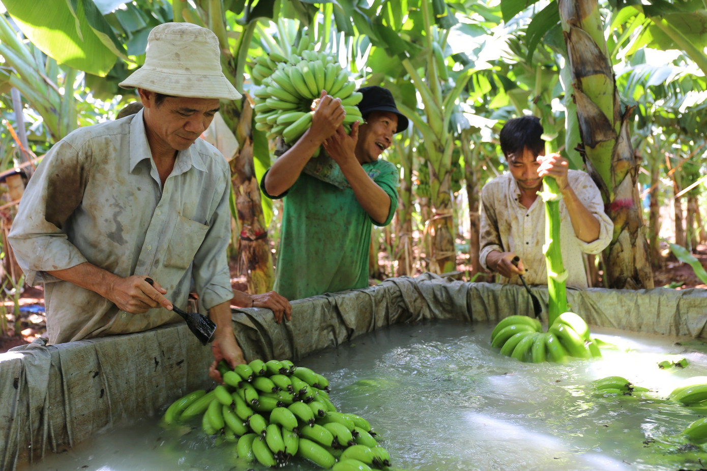 Ghi nhận tại các xã Sông Trầu, Thanh Bình, Bàu Hàm, Sông Thao... của huyện Trảng Bom, giá thu mua tại vườn chuối cấy mô xuất khẩu dao động từ 1.500 đồng - 2.500 đồng/kg. So với cách đây một năm, giá chuối giảm hơn 10.000 đồng/kg.