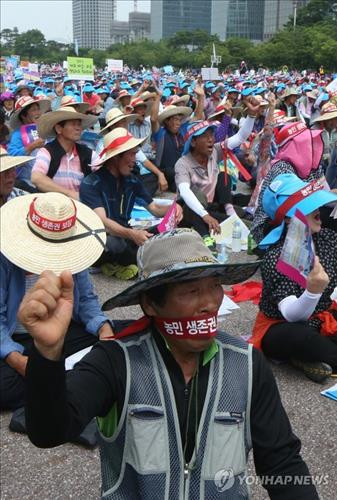Khoảng 5.000 nông dân trồng ớt, hành và tỏi đã tụ tập khu tài chính Yeouido ở thủ đô Seoul, biểu tình phản đối việc Trung Quốc yêu cầu đưa sản phẩm nông nghiệp của nước này tiếp cận sâu hơn vào thị trường Hàn Quốc trong vòng tiếp theo của cuộc đàm phán song phương FTA.