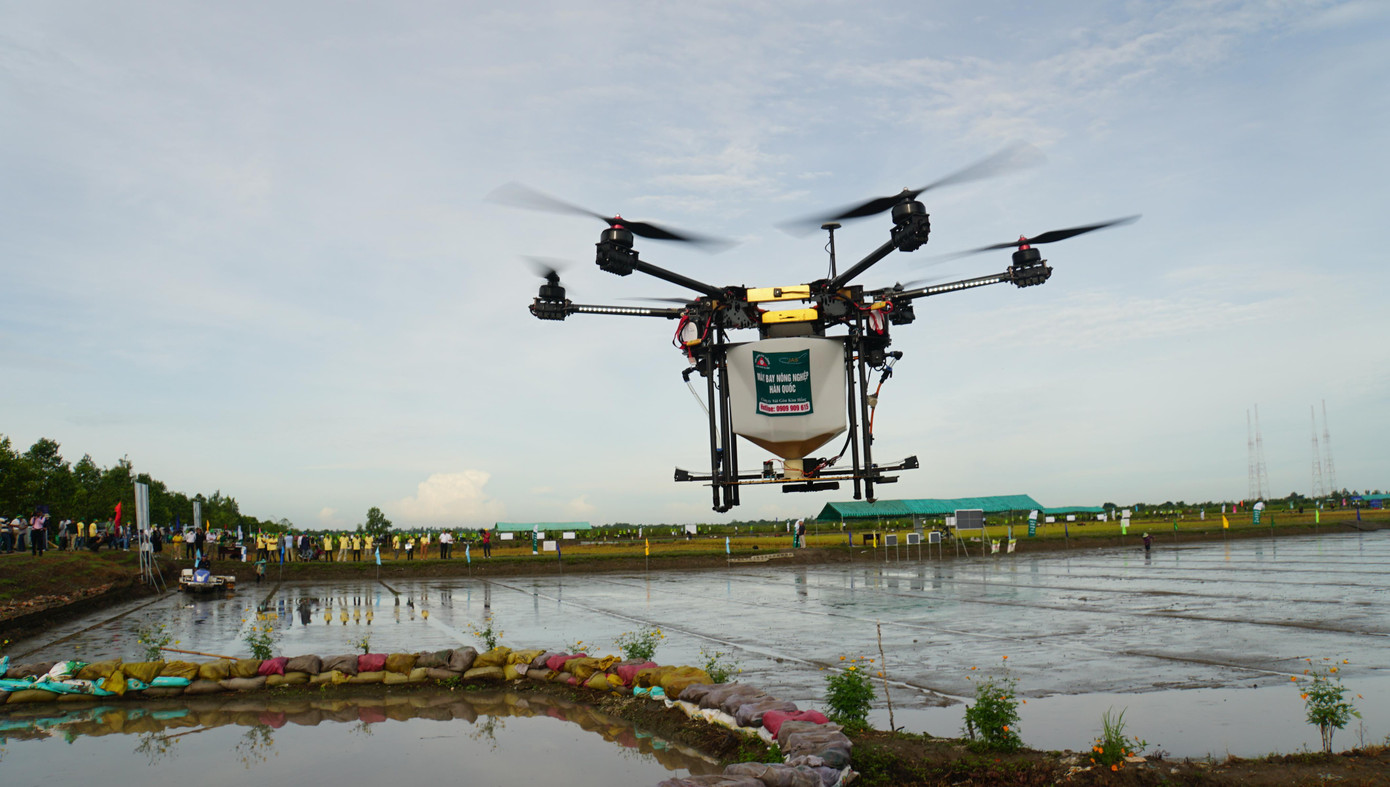 | Máy bay không người lái phục vụ sản xuất nông nghiệp. Ảnh: Hòa Hội |