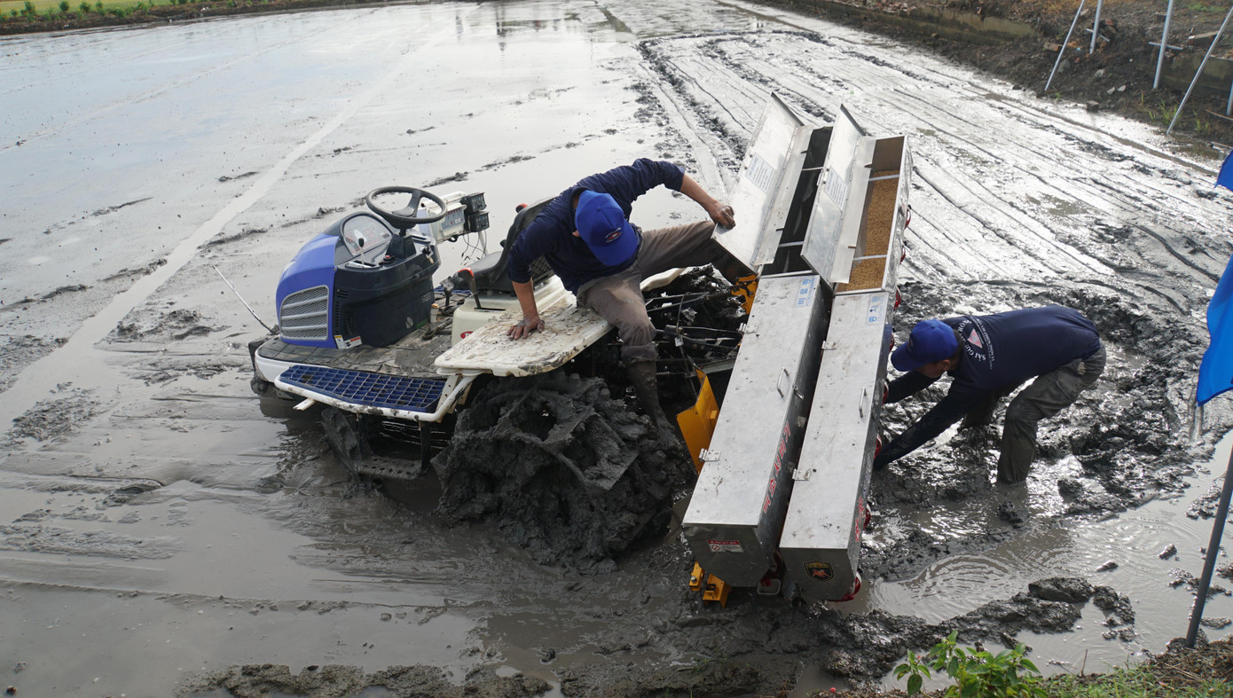| Công ty TNHH Máy Nông Nghiệp Yanmar Việt Nam trình diễn máy sạ cụm. Ảnh: Hòa Hội |