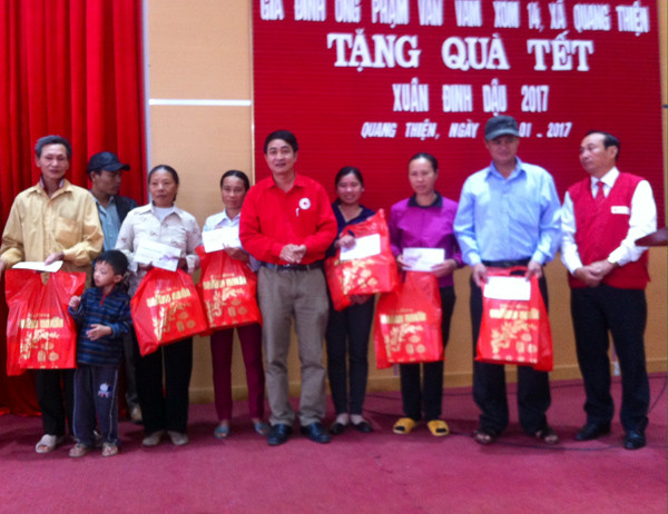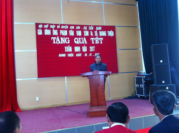 Ngày 08/01/2016, tại Trung tâm Văn hóa Xã Quang Thiện, Huyện Kim Sơn, Tỉnh Ninh Bình, dưới sự chủ trì của Hội Chữ Thập Đỏ huyện Kim Sơn, Gia đình Ông Phạm Văn Vam ở Xóm 14, xã Quang Thiện đã tổ chức trao tặng quà Tết cho các hộ dân đặc biệt khó khăn, các cháu nhiễm chất độc màu da cam, người khuyết tật trong toàn huyện.