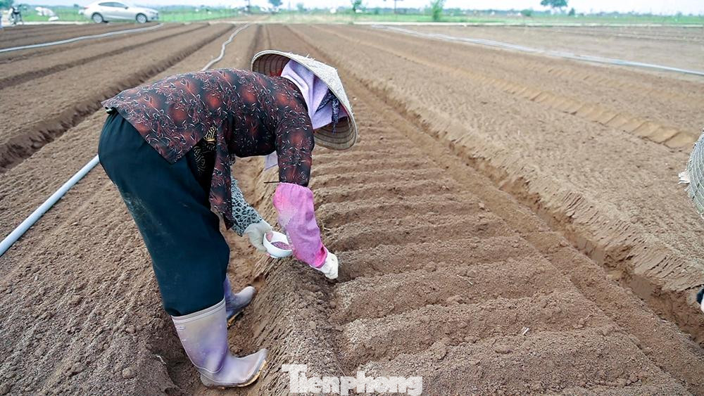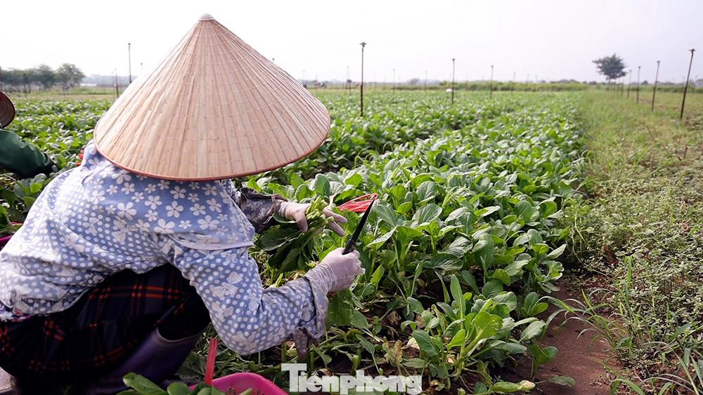 Cánh đồng hơn 200 ha này với nhiều loại rau, củ và hoa màu. Để kịp thu hoạch rau cải cho tiểu thương đặt hàng, nhiều hộ nông dân phải mượn thêm người.