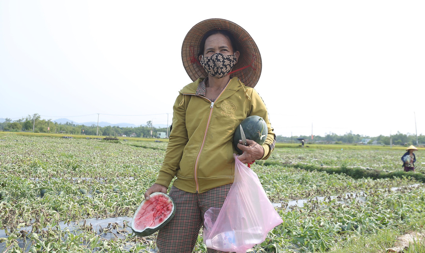Bà Đặng Thị Thạch (ở thị trấn Phú Thịnh, huyện Phú Ninh) rầu rĩ nhìn ruộng dưa rũ héo. Bà nói, còn hơn 10 ngày nữa mới vào vụ thu hoạch, dưa hái bây giờ thì còn non, chỉ chọn được ít trái bán rẻ. “Mới hôm trước đi thăm ruộng thấy dưa sai trái, tưởng được mùa, vậy mà trời cho thấy mà không cho ăn” – bà Thạch thở dài.