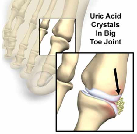 Biểu hiện đặc trưng của bệnh gút là những đợt viêm cấp tính, đột ngột đau nhức khớp (phổ biến ở khớp ngón chân cái), khớp bị sưng, nóng, đỏ, phù nề, căng bóng, kèm theo hiện tượng sốt cao, khát nước,… Sau 1-2 tuần, các triệu chứng sẽ giảm dần. Nếu không có phương pháp điều trị thích hợp, những đợt viêm cấp sẽ tái diễn thường xuyên, kéo dài gây viêm đa khớp, biến dạng khớp, phá hủy xương, sụn khớp hình thành hạt tophi và có nguy cơ dẫn tới tàn phế. Axit uric có thể lắng đọng ở thận, dẫn tới sỏi thận, nặng hơn là gây suy thận.