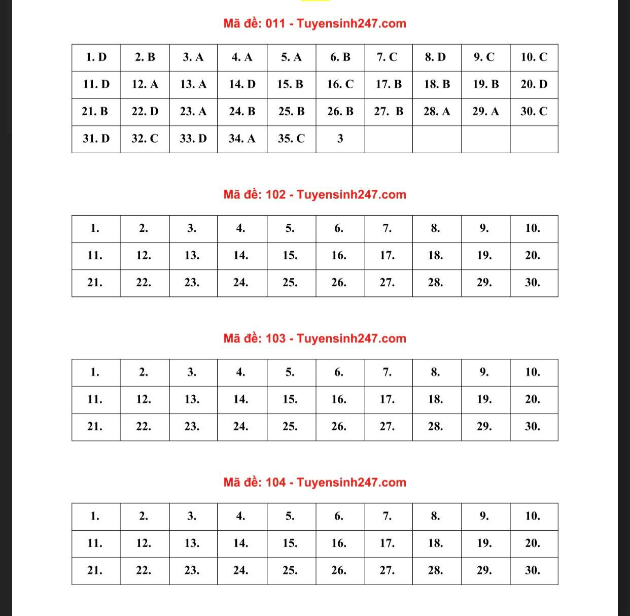 Sau đây là hướng dẫn đáp án của các thầy cô, chuyên gia Trung tâm tuyển sinh 247.