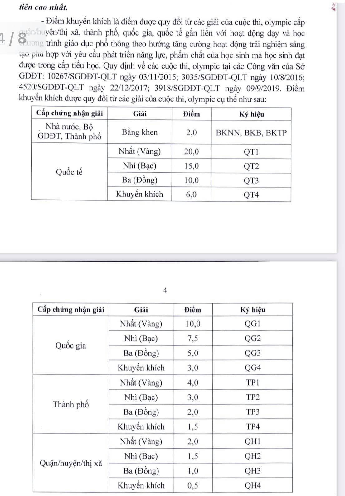 Trong đó, điểm học tập cấp tiểu học là tổng điểm kiểm kiểm tra định kỳ cuối năm các môn: Toán, Tiếng Việt cả 5 năm. Tiếng Anh ở lớp 3-5; Khoa học, Lịch sử và Địa lý lớp 4,5.