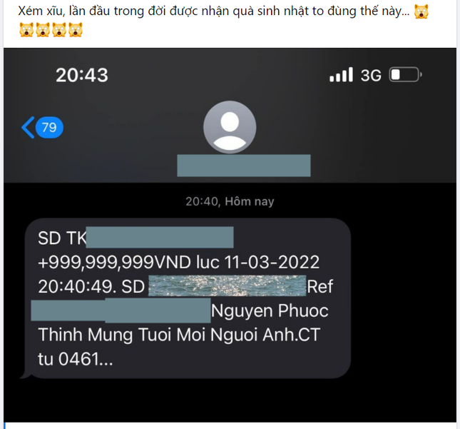 Cụ thể, quản lý của Noo chia sẻ: "Xém xỉu, lần đầu trong đời được nhận quà sinh nhật to đùng thế này...". Quản lý của Noo Phước Thịnh còn đăng tải cả tin nhắn báo Noo Phước Thịnh chuyển khoản gần 1 tỷ đồng tới tài khoản của anh.