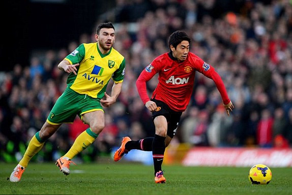 Phút 69, M.U có sự thay đổi người, tài năng trẻ Januzaj vào thế chỗ tiền vệ Kagawa. Bên phía Norwich: Ricky van Wolfswinkel được tung vào sân thay Hooper.