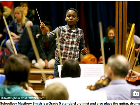 Thần đồng âm nhạc người Anh Matthew Smith, 11 tuổi, đang lên kế hoạch chỉ huy dàn nhạc chơi vở Die Fledermaus tại phòng hòa nhạc Royal Concert Hall, thành phố Nottingham vào ngày 2/4 tới đây. Matthew được kỳ vọng sẽ xác lập kỷ lục là người trẻ nhất thế giới từng chỉ huy một dàn nhạc giao hưởng.
