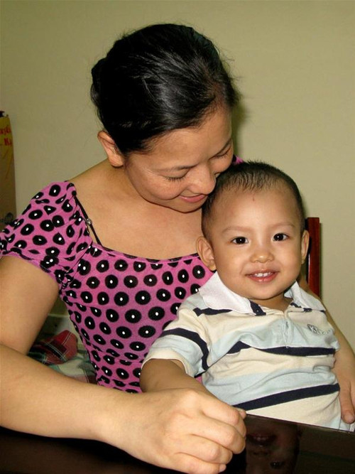 Suốt buổi nói chuyện, Thu Quế không rời mắt khỏi cậu con trai 21 tháng tuổi tên thân mật là Dế. Dế ngoan, chăm chú quan sát mẹ và khách, thỉnh thoảng thích ngồi tọt vào lòng bố Phạm Cường. Khách về, Dế biết ra bắt tay và lấy giầy hộ.