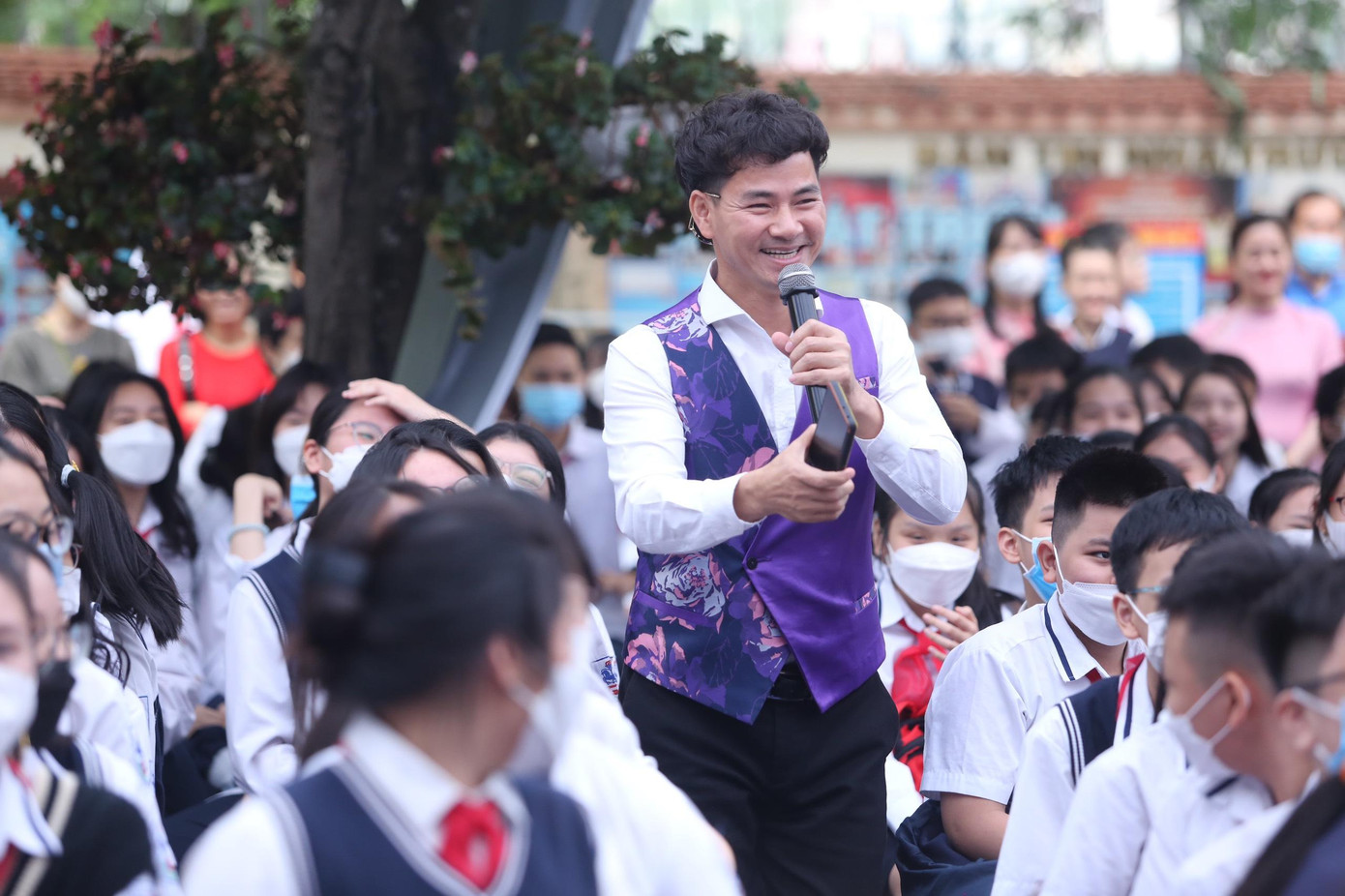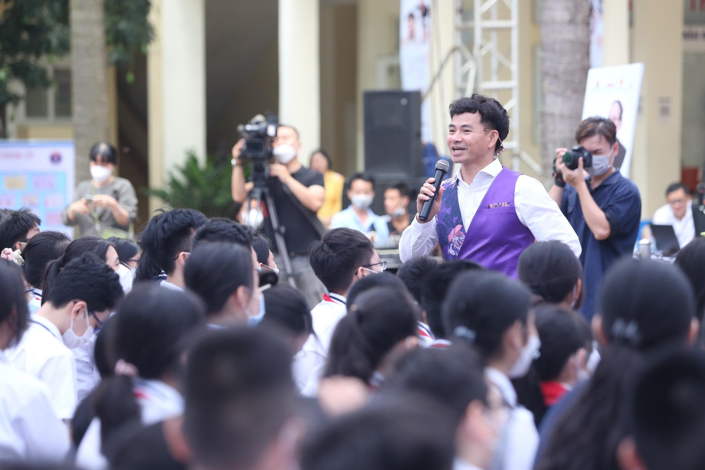 “Không phải lúc nào bố mẹ cũng đủ điều kiện để chăm lo cho các con nhưng lẽ sống của bố mẹ chính là các con và tình yêu của cha mẹ dành cho các con là vô bờ bến” - anh nói. NSƯT Xuân Bắc cũng hài hước cho biết anh thường xuyên tới các trường học để làm việc với các bạn học sinh và thấy rằng làm việc với các bạn cấp 1 và cấp 3 thì rất dễ nhưng với các bạn học sinh cấp 2 "ẩm ương" thì lại rất khó làm việc.