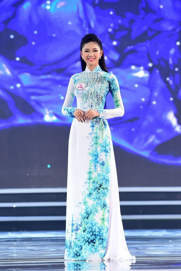 Chiếc quần mặc áo dài được NTK Ngô Nhật Huy biến tấu thành áo dài để giúp các người đẹp di chuyển dễ dàng hơn.