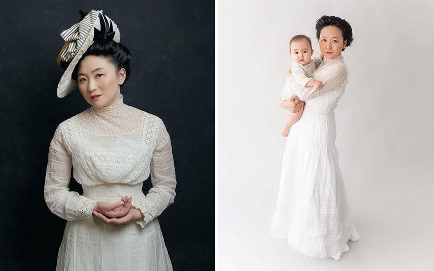 | Chồng và con của Christine chụp ảnh gia đình trong những bộ đồ quyền quý thời xưa |