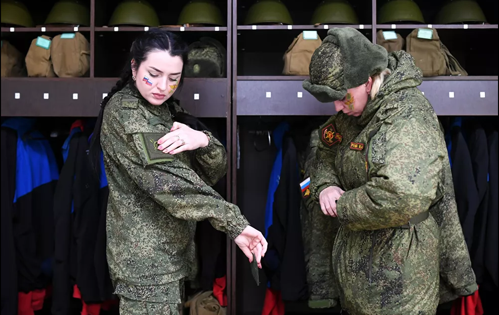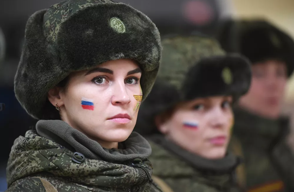 Các nữ binh sĩ xinh đẹp mặc các phục ngụy trang của quân đội. .Ảnh: Sputnik
