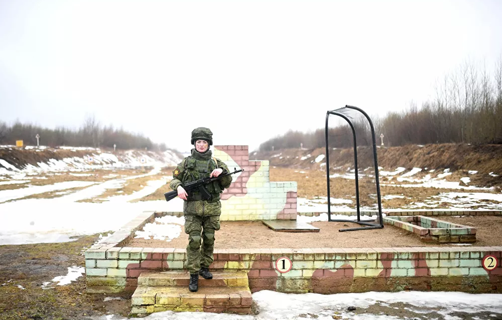 Một nữ binh sĩ thực hiện các kỹ thuật huấn luyện cơ bản. Ảnh: Sputnik