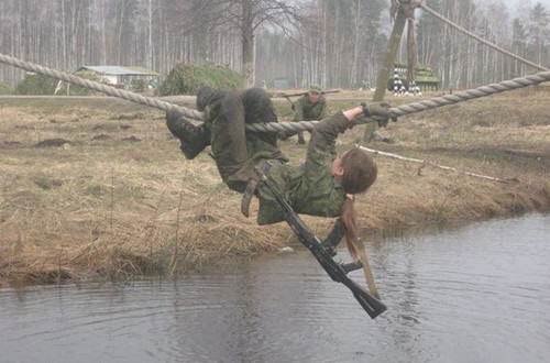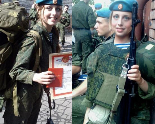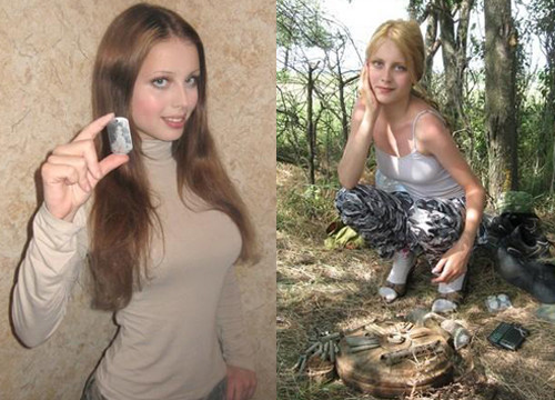 Yulia giơ thẻ binh sĩ của mình và ngồi bên một quả địa lôi. Cô gái trẻ có ngoại hình như búp bê với vòng một gợi cảm và vòng eo siêu nhỏ.