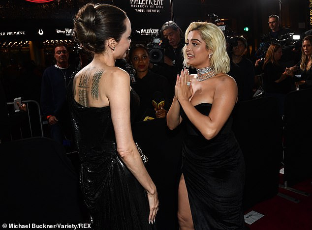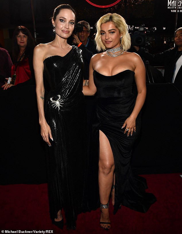 Bebe Rexha chụp hình cùng nữ diễn viên chính của phim - minh tinh Angelina Jolie.