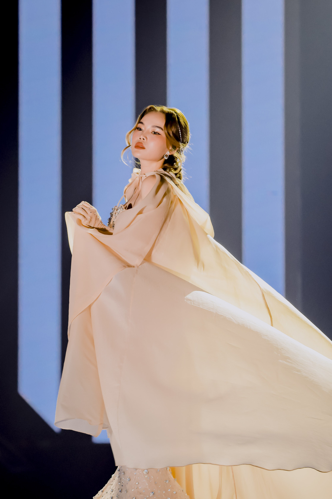 Phần trang phục cũng là điểm nhấn khi khác với lần xuất hiện ở vòng hội ngộ, ngay khi lên sân khấu, Giang Hồng Ngọc đã biến hóa thành một "nữ hoàng". Cô diện một chiếc đầm dạ hội đuôi cá cực sang trọng, điểm nhấn là một chiếc áo choàng mỏng, bay nhẹ trong làn gió. Đặc biệt, khi ánh đèn sân khấu dần dần giảm xuống, những đường vân tia sáng được gắn kết cầu kỳ trên chiếc đầm đã giúp nữ ca sĩ trở nên vô cùng rực rỡ.