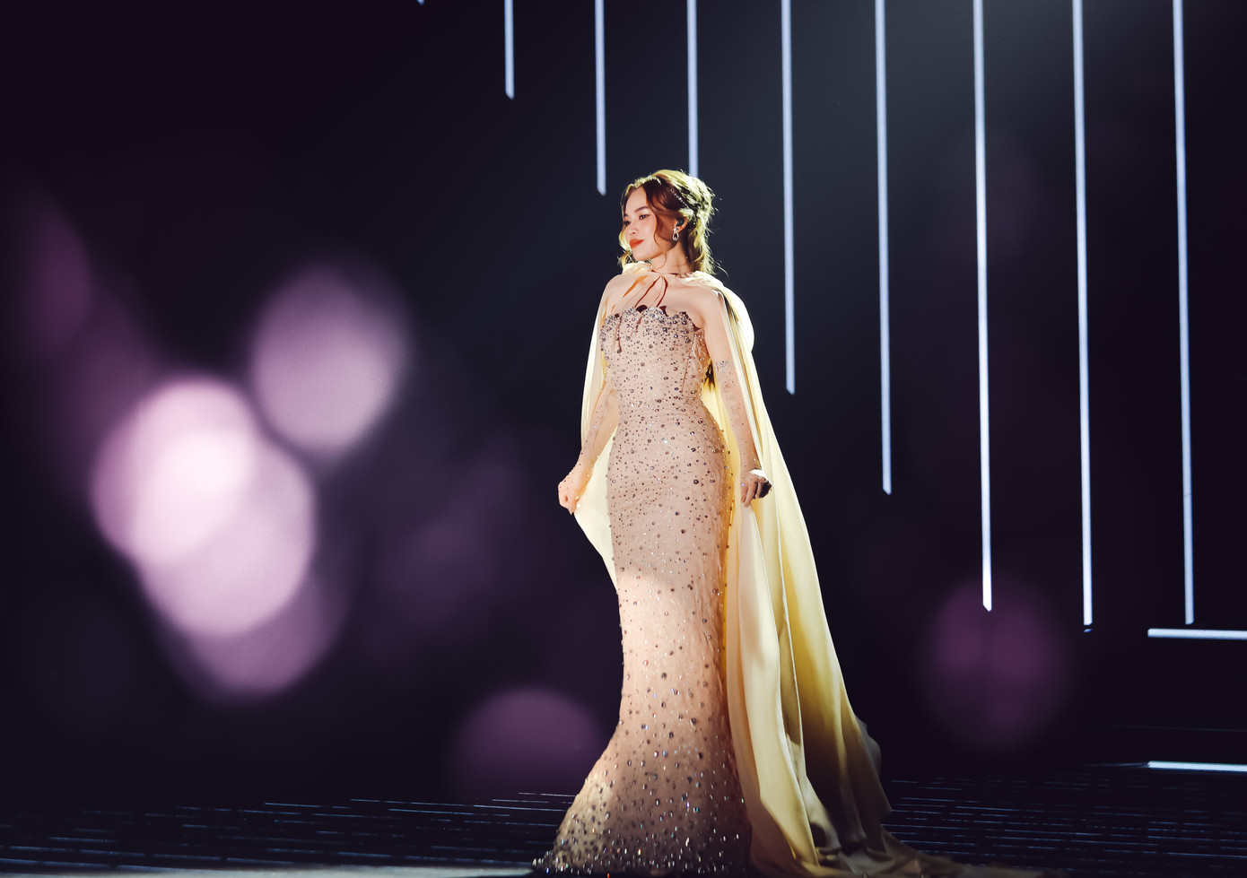 ‘Ngọc nữ bolero’ chia sẻ: "Là Ngọc muốn bước ra khỏi nỗi sợ mà bấy lâu nay mình ám ảnh, bất cứ điều gì cũng e dè và có phần sợ sệt. Chọn bài Sợ cho phần solo mở màn dẫu nghe về 'phong thuỷ' không tốt, nhưng Ngọc nghĩ mình có niềm tin bước qua được nỗi sợ bấy lâu nay. Thông qua ca khúc và chiếc đầm được thiết kế lấp lánh, Ngọc muốn gửi gắm thông điệp là mọi người đừng sợ hãi dù bất cứ điều gì xảy ra, tự tin với bản thân và khả năng mình có, nhất là phụ nữ phải thật tỏa sáng trong tất cả mọi tình huống".